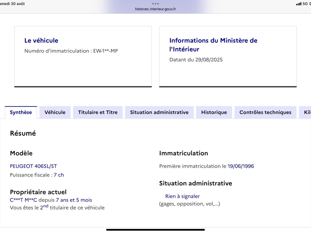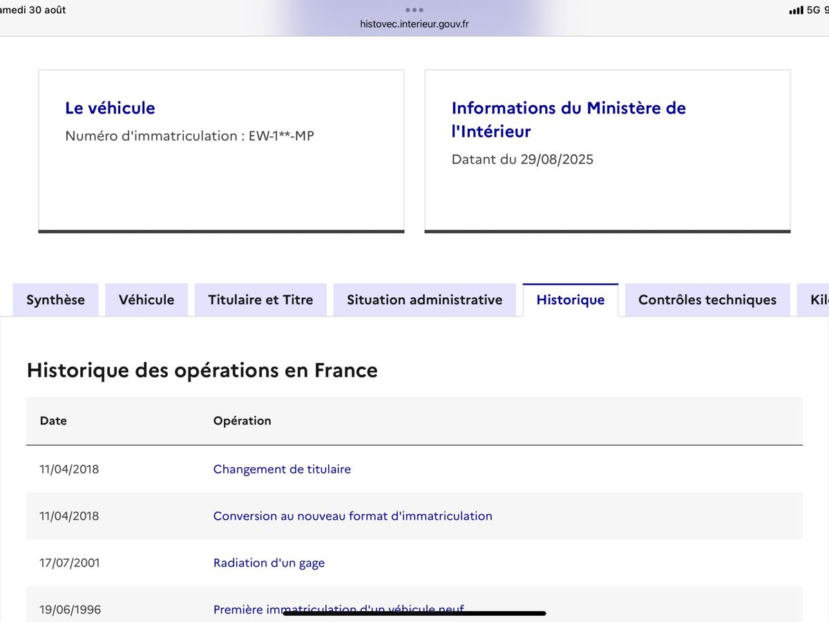 Référence véhicule